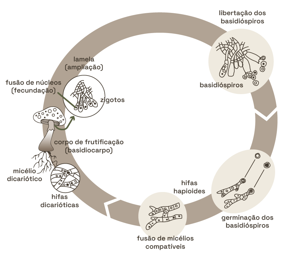 Estrutura portadora de esporos de cogumelos.