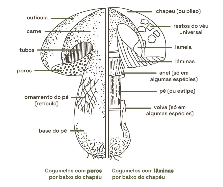 Corpo de um fungo, maioritariamente no subsolo ou escondido na madeira.